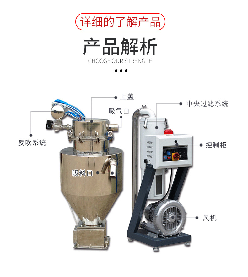 真空上料機又叫真空輸送機,主要針對工廠原料的輸送時,粉塵大、用人成本高、工人搬運累、環保不達標等一系列問題。