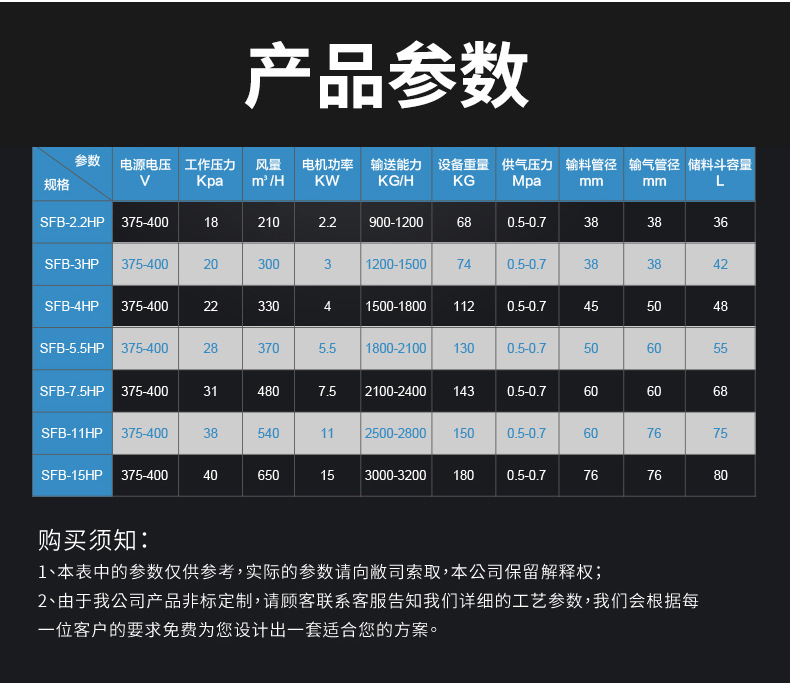 四:真空上料機規(guī)格選型表(部分)
